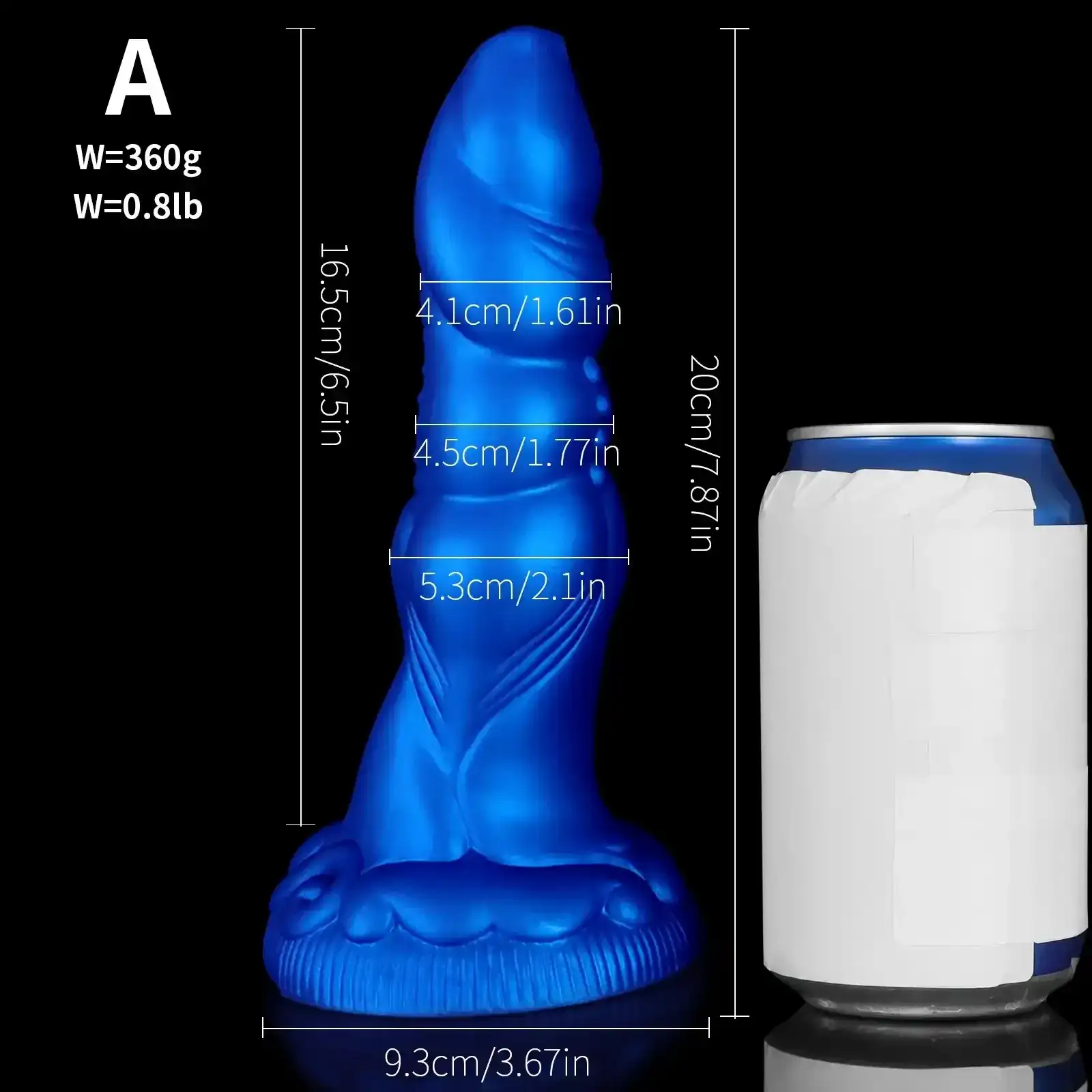 - Grand (C): Longueur : 23.5 cm, Longueur insérable : 19.5 cm, Diamètre : 5.1 cm