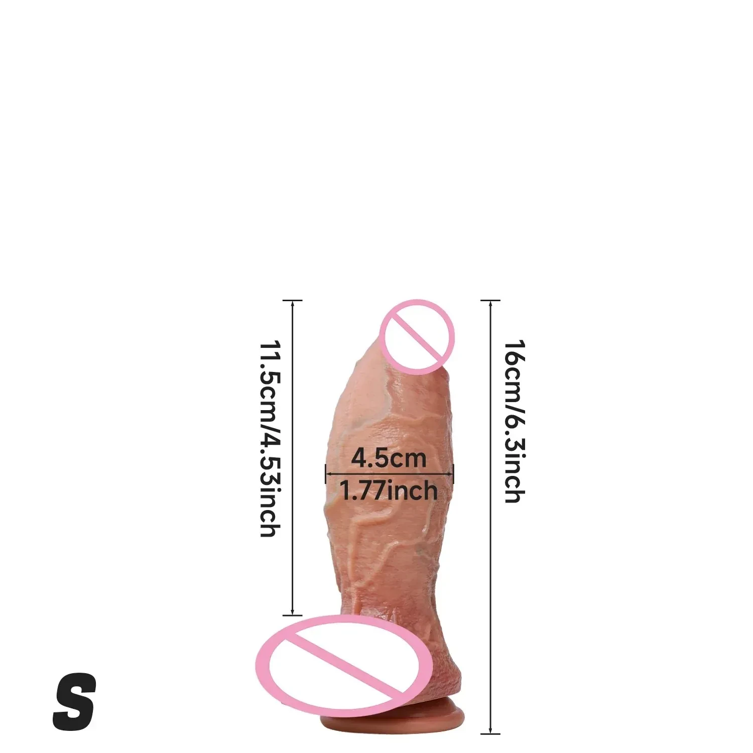 - S : Longueur insérable : 11,5 cm, Longueur totale : 16 cm, Diamètre : 4,5 cm